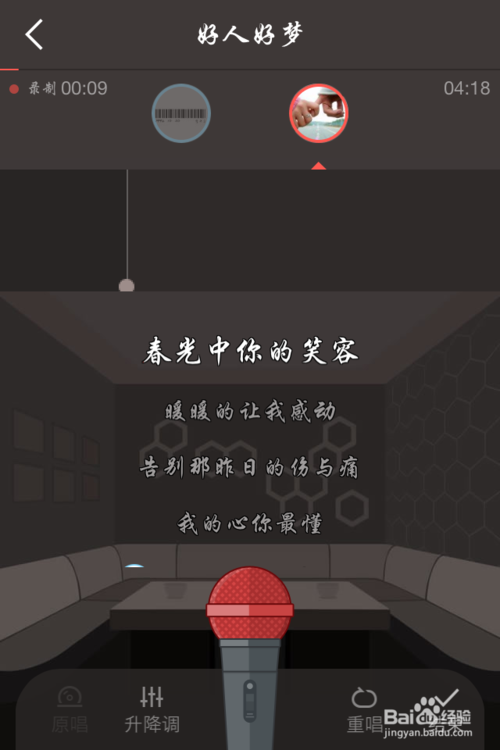 選首自己喜歡的,選擇唱的部分(分紅藍(lán)兩部分),開始錄制就可以了。