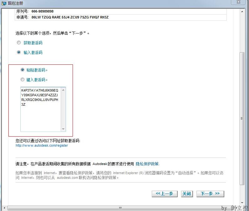 粘貼激活碼,下一步完成激活