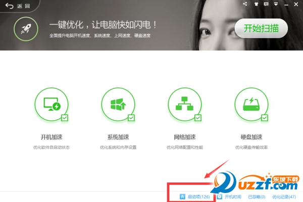 點擊打開360安全衛(wèi)士,選擇“優(yōu)化加速”進入界面后點擊“啟動項”如圖文字: