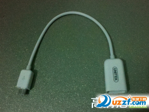 2.把OTG線插在挨著電源插口的Micro USB接口,并且插上優(yōu)盤OTG數據線