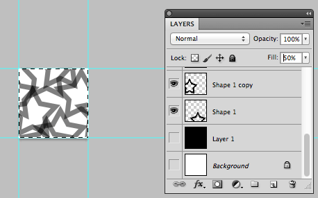 復制形狀1圖層,在中心區(qū)域隨便放置,然后記得重復步驟9,如下圖所示