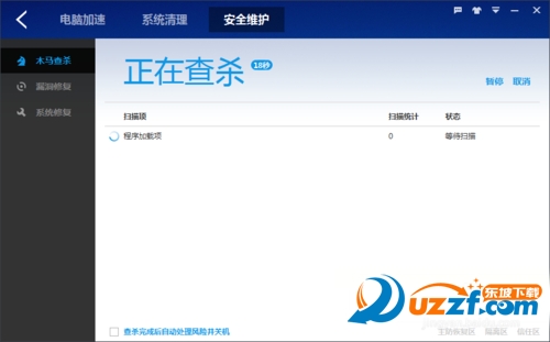 如果你很長(zhǎng)時(shí)間對(duì)電腦沒(méi)有進(jìn)行過(guò)掃描,那么在這里就會(huì)有醒目的“未掃描”提示,這個(gè)時(shí)候,就趕緊開(kāi)啟你的木馬掃描之旅吧。