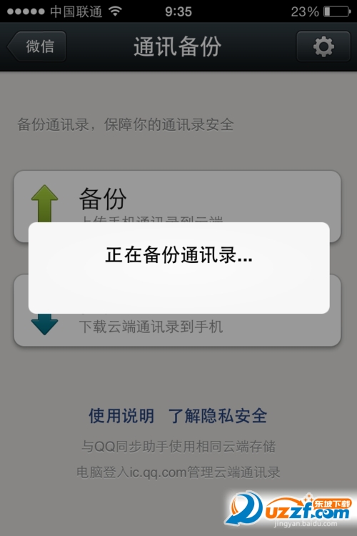 然后即可看到微信顯示正在備份通訊錄了,如圖所示