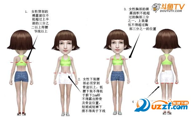 b.女主播背部的裸露部位不能超過上半部的三分之二以上即腰節(jié)線以上,違規(guī)扣1分;