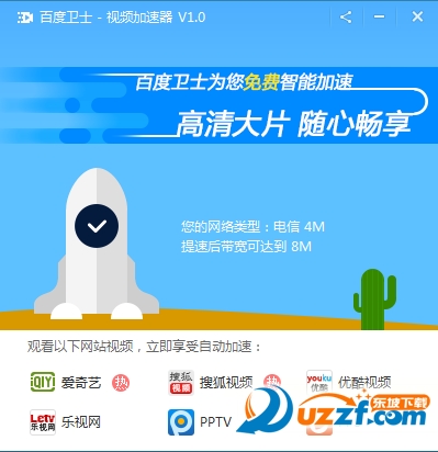 百度衛(wèi)士視頻加速器是一款免費(fèi)的在線視頻加速工具,2M網(wǎng)速最高提速到20M,光纖最高提速到100M!智能自動(dòng)加速,簡(jiǎn)單好用!