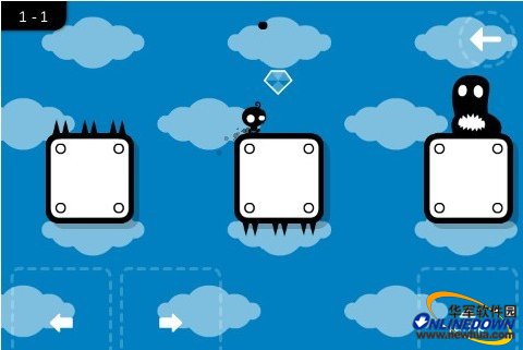 《Soosiz》游戲的控制也是非常的簡單,通過虛擬的左右方向鍵和彈跳鍵即可游戲,彈跳鍵按得時間越長跳的越高。