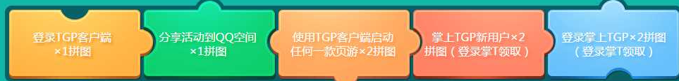 活動期間,每位玩家均可通過完成以下任務(wù)獲得拼圖,用以兌換寶箱里的獎品。其中分享活動和注冊成為掌T新用戶只能獲得一次拼圖,其余任務(wù)每位玩家每日都可參與獲得拼圖,拼圖可累積。