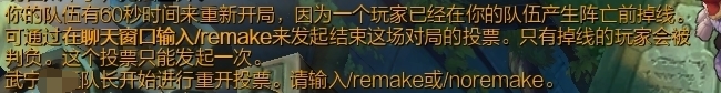 在3分鐘標(biāo)記期間內(nèi),人員較少的一方將收到投票提示信息,你可以在聊天窗口中鍵入 /remake 來(lái)發(fā)起投票