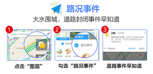 使用方法非常簡單,下載高德積水地圖app,導航將自動避開積水路段,提示用戶繞行,同時,高德地圖上線了路況事件,實時為市民展示路況事件信息,提示市民避讓。