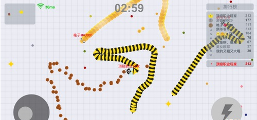 3.長按加速鍵,用巧妙的走位讓蛇身被別人撞上,就可以吃掉尸體迅速變長。