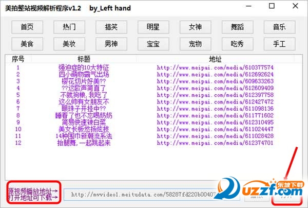 第二步:編譯程序,打開軟件,復制你需要的美拍視頻地址,點擊打開或播放,打開地址即可下載。
