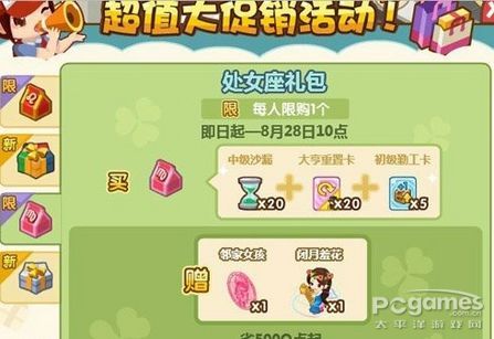 目前,QQ超市正在進(jìn)行禮包超值大促銷活動哦~在活動期間(8月14日14:00至8月28日10:00),3級以上的用戶就可以購買處女座禮包和占地為王禮包哦~