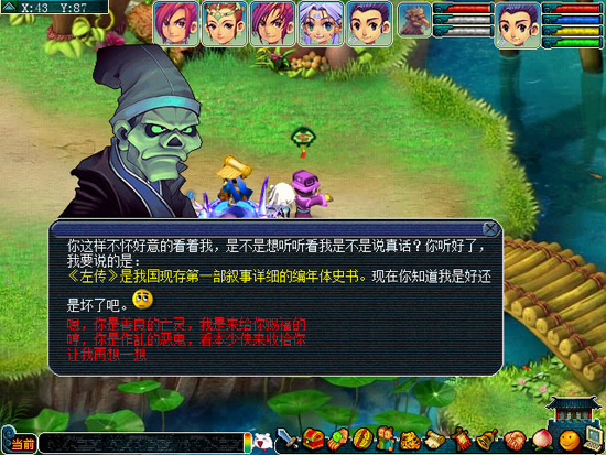 當玩家領(lǐng)取任務(wù)后,各隊的隊長會得到道具“幽冥珠”。然后根據(jù)這個道具的提示,大家可以找到各個亡魂。大家一定要仔細分辨亡魂所說的話,如果它說真話,那就是善良的亡靈,請你們?yōu)樗n福;如果說的是假話,那就是作亂的惡鬼,大家就趕緊將它收服!