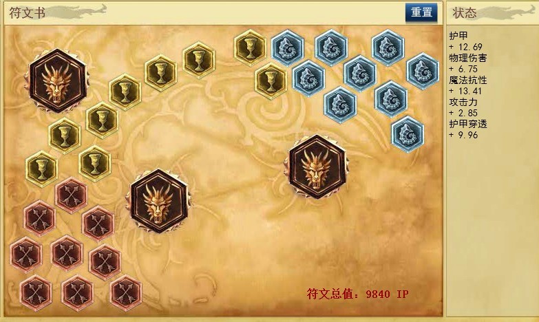 再說說ap吧,ap的大精華用法強,紅色用法術(shù)穿透, 黃色固定護甲,藍色減CD或者法強。 以下是符文書: