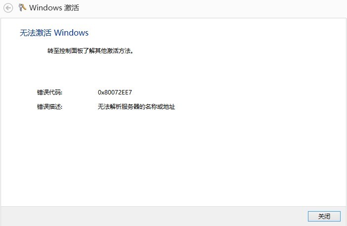 斷掉網(wǎng)絡(luò),點(diǎn)擊激活, 會提示"無法解析服務(wù)器地址和名稱",如下圖:
