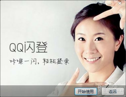 1、“QQ閃登”位于登錄面板右下角,點(diǎn)擊即可進(jìn)入。首先軟件會(huì)彈出一個(gè)歡迎面板,點(diǎn)擊“開(kāi)始使用”。