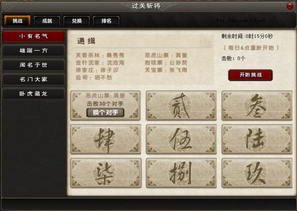 過(guò)關(guān)斬將面板: