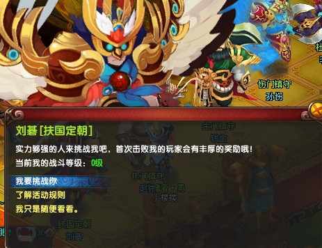 2.當(dāng)服務(wù)器中有玩家擊敗劉碁后,玩家可以找對(duì)應(yīng)等級(jí)的鎮(zhèn)守挑戰(zhàn)。