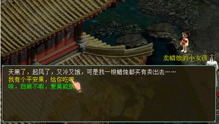 2)將平安果送給賣蠟燭的小女孩/小男孩,獲得蠟燭作為饋贈。
