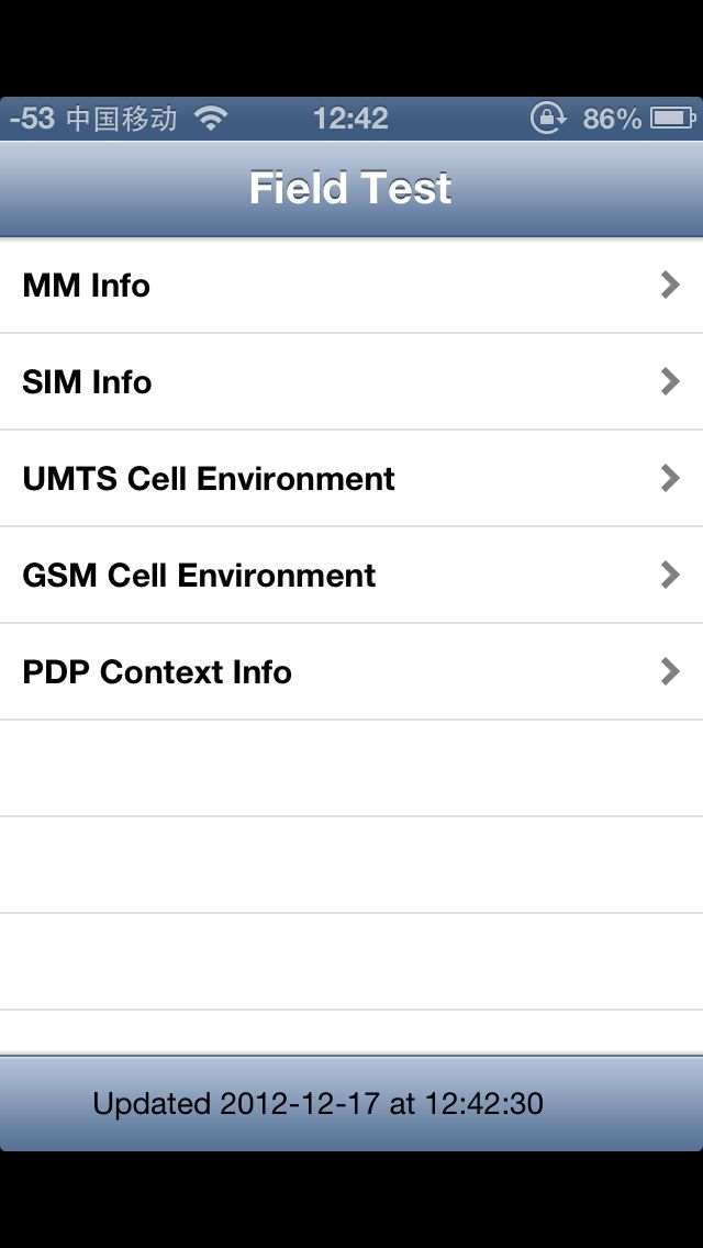 第二步,在撥號鍵盤上輸入*3001#12345#*,然后按下【呼叫】按鈕,iOS內(nèi)置應(yīng)用Field Test就被啟動了,同時左上角也出現(xiàn)了信號強度的精確值。