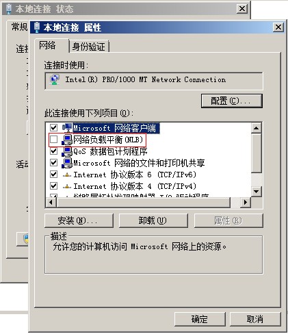 5.6.若在群集連接主機(jī)時(shí)顯示出現(xiàn)錯(cuò)誤提示 “在主機(jī) ‘MyPC上的NLB管理器’ 不能繼續(xù),因?yàn)闆]有安裝microsoft群集服務(wù)” ?梢詸z查服務(wù)器上是否已經(jīng)成功安裝 “網(wǎng)絡(luò)負(fù)載平衡” 服務(wù),然后打開 “本地連接-屬性”,選擇“網(wǎng)絡(luò)負(fù)載平衡(NLB)”。