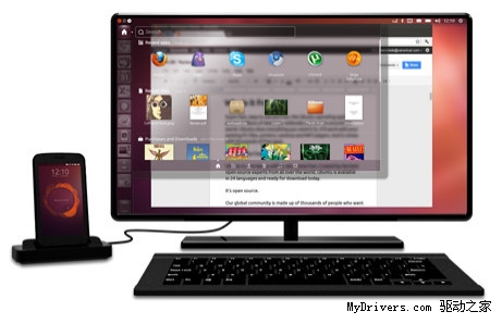 在高配置手機(jī)上,Ubuntu為超級手機(jī)開辟了新的道路,通過手機(jī)底座將其與顯示器和鍵盤相連,它就能提供完整的PC桌面體驗(yàn)。