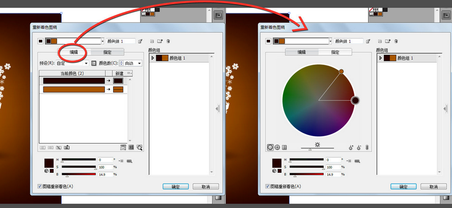 5、現(xiàn)在我們打開了顏色組的編輯器。單擊“編輯”選項(xiàng),可以在色盤上調(diào)節(jié)該顏色組。