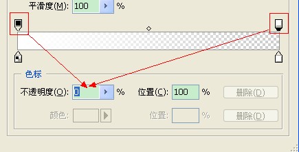 4.再分別點擊上面兩個圖標(biāo)。左邊的不透明度為100%。右邊的不透明度為0%。