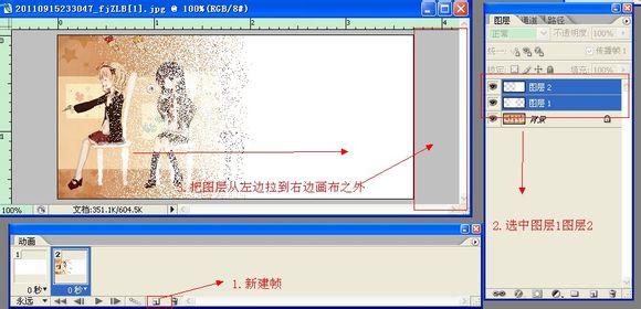 新建幀、然后選中圖層1和圖層2.拉到右邊畫布之外。
