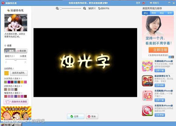 用美圖秀秀做熒光字教程: