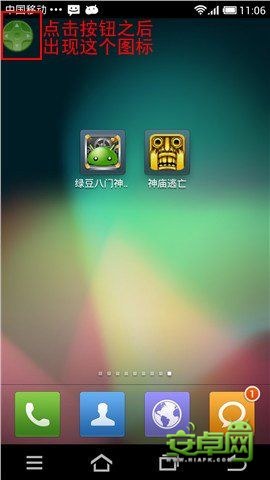 當(dāng)大家點(diǎn)擊了開(kāi)啟游戲修改按鈕之后,在手機(jī)屏幕的左上方就會(huì)出現(xiàn)一個(gè)綠色按鈕圖案。然后退到桌面,打開(kāi)自己需要修改的單機(jī)游戲,進(jìn)行游戲。綠豆八門神器可以對(duì)目前安卓平臺(tái)大部分的單機(jī)游戲進(jìn)行金幣、經(jīng)驗(yàn)值、技能點(diǎn)等可變動(dòng)數(shù)值進(jìn)行修改。下面以當(dāng)今最火爆的一個(gè)單機(jī)游戲:神廟逃亡進(jìn)行舉例說(shuō)明。
