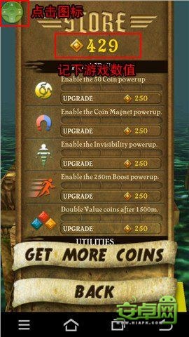 繼續(xù)游戲,令上次搜索的數(shù)值發(fā)生改變。小編繼續(xù)玩了一會(huì)兒神廟逃亡,令金幣數(shù)量從429變成了557,然后點(diǎn)擊左上角的圖標(biāo)喚出綠豆八門神器的修改框。輸入新的數(shù)值557進(jìn)行第二次搜索。當(dāng)搜索結(jié)果是唯一的時(shí)候,綠豆八門神器會(huì)自動(dòng)彈出最終的修改按鈕,把自己想要的數(shù)字填寫(xiě)上去,然后點(diǎn)擊修改按鈕,再次回到游戲,切換一下界面,游戲的數(shù)值就改變啦!