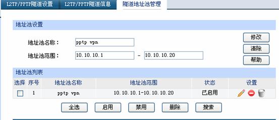 A.----->L2TP/PPTP----->隧道地址池管理:建立隧道地址池(PPTP 隧道通信時(shí)使用的ip地址):
