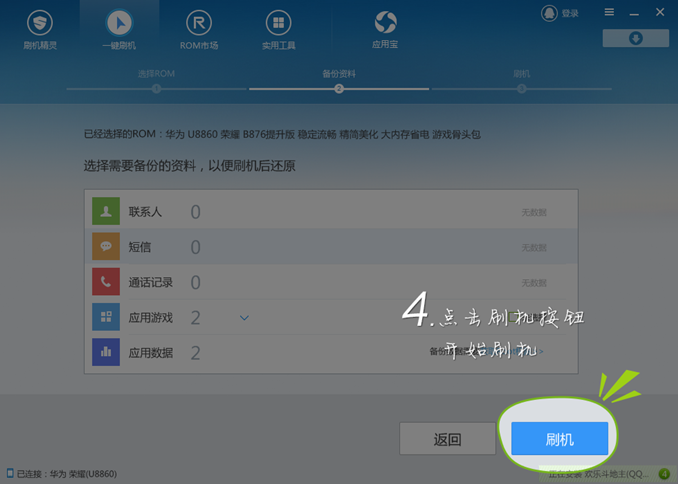 4、點(diǎn)擊刷機(jī)按鈕,開始刷機(jī)