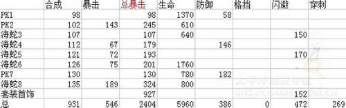 然后混搭了幾套八卦,希望能有所幫助(假設(shè)合成屬性全部為暴擊,海蛇八卦最大值)