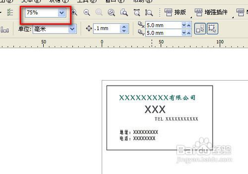 我們可以在工具欄上將窗口調(diào)整到75%,將名牌移到文件左上角。