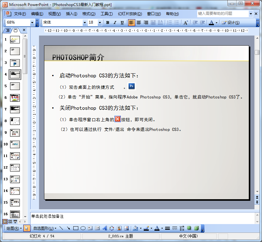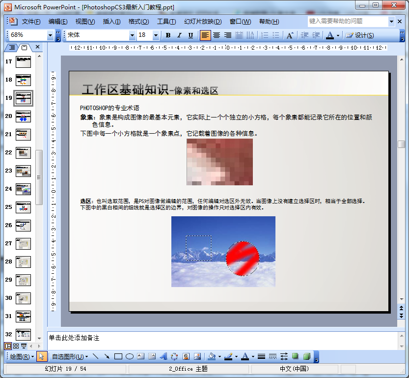 Photoshop CS3也稱作為Photoshop 10.0,有很多想學(xué)習(xí)Photoshop CS3的朋友們這里小編帶來的是PhotoshopCS3最新入門教程,介紹了Photoshop CS3軟件,工作區(qū)基礎(chǔ)知識(shí),通過實(shí)例講解了工具的使用方法,這份ppt文件共計(jì)54頁(yè),需要的朋友點(diǎn)擊下面的地址免費(fèi)下載即查看詳細(xì)內(nèi)容。