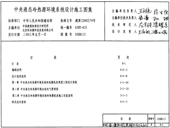 03SR113中央液態(tài)冷熱源環(huán)境系統(tǒng)設(shè)計(jì)施工圖集目錄