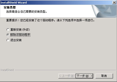 (1)如果出現(xiàn)移除該驅(qū)動程序時,選擇“移除該驅(qū)動程序”,并點擊“下一步”