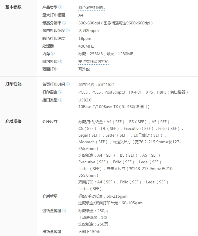 富士施樂DocuPrint C2120彩色激光打印機參數(shù)