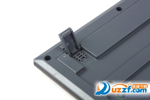 鍵盤背面,產(chǎn)品標(biāo)識齊全,在鍵盤下方能夠看到寬大的排水槽,能夠快速導(dǎo)出意外滲漏的液體。羅技K120鍵盤采用了可折疊支架,在撐起支架后打字時能夠明顯感覺到手指與按鍵間有一個舒適的角度。