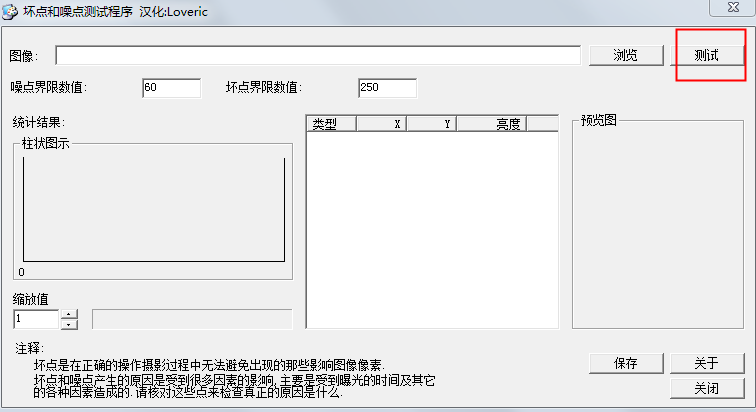 壞點(diǎn)和噪點(diǎn)測試程序(照片壞點(diǎn)檢測)1.0 免費(fèi)綠色版