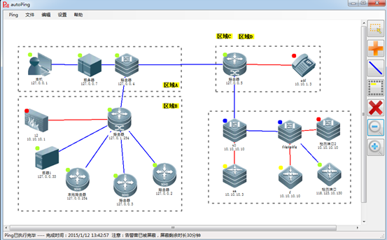autoPing 是一款基于PING協(xié)議及TCP協(xié)議的網(wǎng)絡(luò)設(shè)備在線狀態(tài)監(jiān)測(cè)軟件?梢栽O(shè)置定時(shí)監(jiān)測(cè)網(wǎng)絡(luò)拓?fù)鋱D中的設(shè)備,根據(jù)監(jiān)測(cè)結(jié)果,在網(wǎng)絡(luò)拓?fù)鋱D上顯示該設(shè)備在線狀態(tài),兼有告警功能。