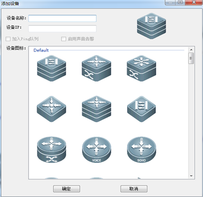 添加設(shè)備:單擊“添加設(shè)備”按鈕,輸入相關(guān)參數(shù)后按確定,移動(dòng)鼠標(biāo)到需要放置該設(shè)備的地方點(diǎn)擊鼠標(biāo)左鍵。
