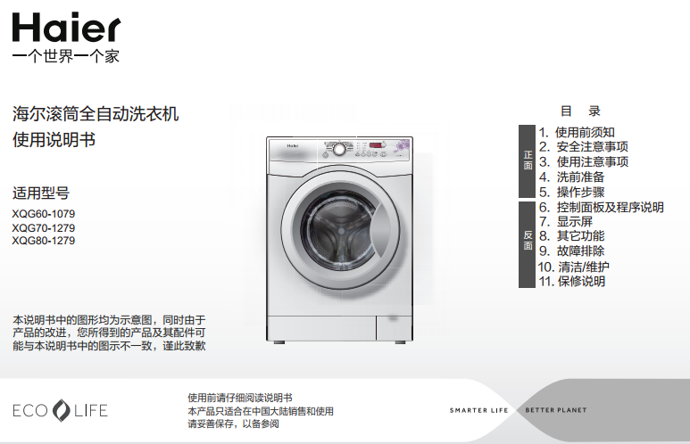海爾xqg80 1279說明書一覽