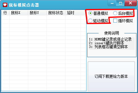 魔力團隊鼠標模擬點擊器是一款綠色小巧、簡單易用的模擬鼠標點擊軟件。該軟件支持普通模擬、后臺模擬、驅(qū)動模擬等監(jiān)控模式,手動開啟循環(huán)模擬,軟件則自動模擬已記錄的腳步功能,可滿足不用用戶的鼠標模擬點擊需求,非常給力。歡迎下載使用!