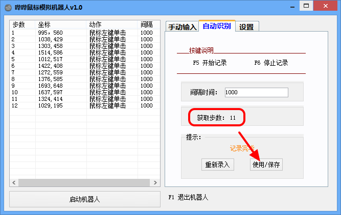 4、自動(dòng)設(shè)別:按[F5]開始鼠標(biāo)點(diǎn)擊過程