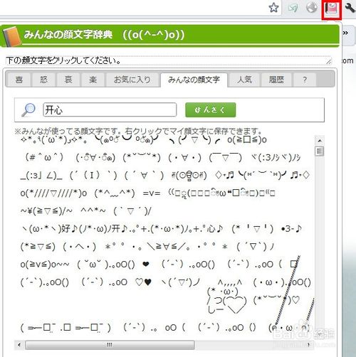 如果你使用的是谷歌瀏覽器,就可以安裝“顏文字詞典”插件,在插件中能夠直接對顏文字搜索獲得自己想要的顏文字。(插件很強(qiáng)大很好用,比較推薦這種方式)