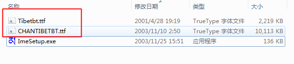 1、下載解壓后,先安裝Tibetbt(BitTorrentbt).ttf和CHANTIBETBT.ttf字體,將這2個字體文件復(fù)制到C:\windows\Fonts目錄下