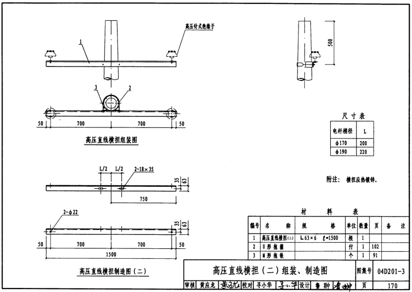變壓器臺架(二)橫梁及支持抱箍制造圖 180